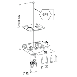 Sortie de caisson verticale avec tige 6 pans de 7 mm en acier zingué longueur 315 mm pour manivelle de diamètre 12 mm.